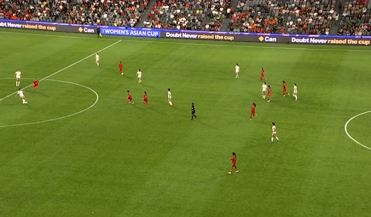 此役是中国女足本届亚洲杯的首场比赛,泰国裁判猜沙尼担任主裁判,布乌敦担任视频助理裁判,罗碧芝则担任AVAR。