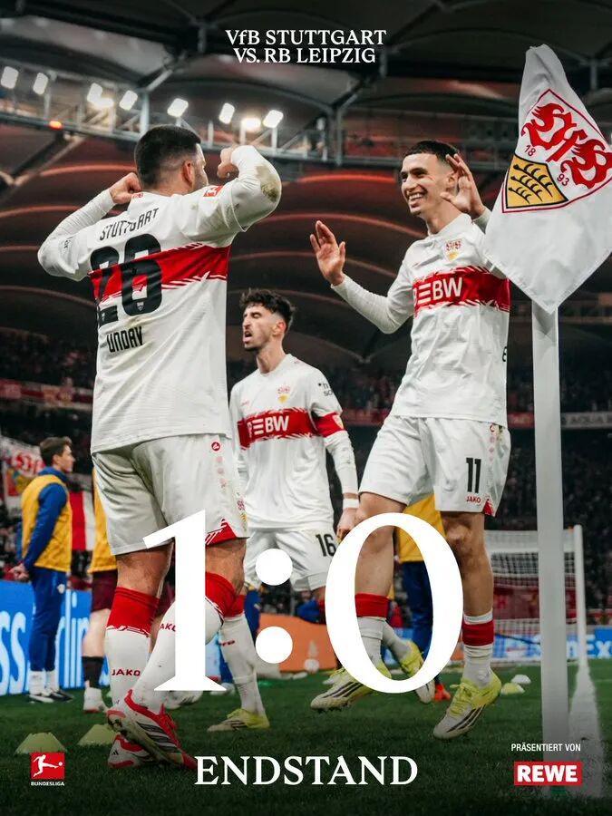 北京时间3月16日凌晨2点30分,斯图加特坐镇奔驰竞技场迎战RB莱比锡,双方赛前同积47分,所以本场比赛是欧冠席位的关键卡位战。上半场比赛,莱比锡球员赛瓦尔德和鲍姆加特纳的射门制造了一定威胁,努贝尔发挥不俗,双方互交白卷。下半场比赛,菲里希助攻昂达夫低射建功,后者打进了本赛季德甲联赛的第16球,暂时超越迪亚斯,独居第二,RB莱比锡反扑未果,补时阶段,客队球员奥尔班头槌击中立柱,错失进球机会。最终,斯图加特1比0力克RB莱比锡,积50分追平联赛第三的霍芬海姆。