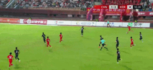 第56分钟,中国队一脚斜传打穿韩国队后防,谢晋禁区内倒三角回传中路,邝兆镭包抄抽射破门,比分2-3扳回一城。